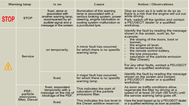 Any fault resulting in the illumination of a warning lamp must be investigated further by reading the associated message in the multifunction screen.
