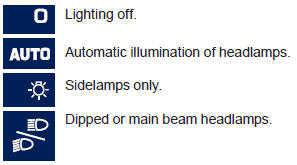 In the lighting off and sidelamps modes, the driver can switch on the main beam headlamps temporarily ("headlamp flash") by maintaining a pull on the stalk.